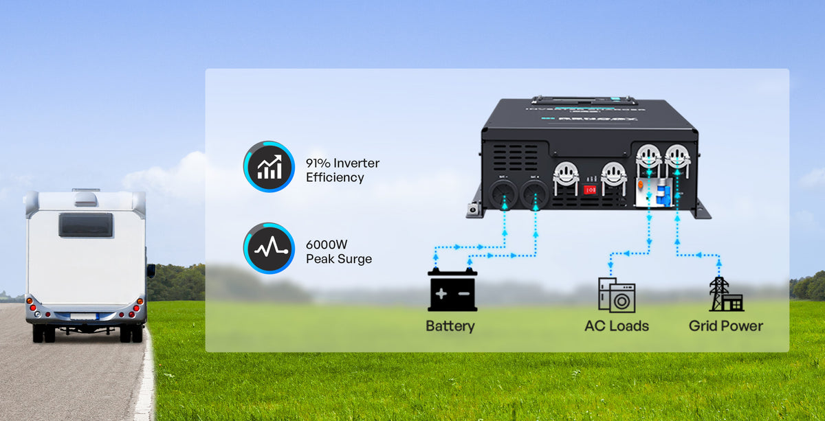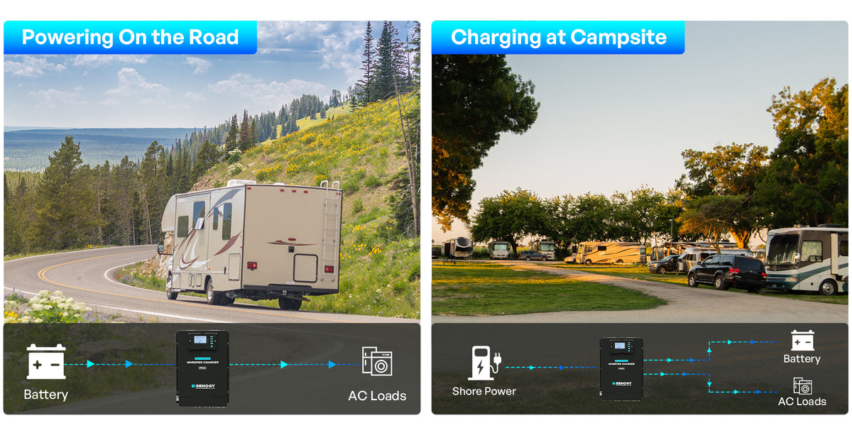 Alimenta il tuo camper durante il viaggio e ricarica facilmente con la corrente di rete quando sei in campeggio.