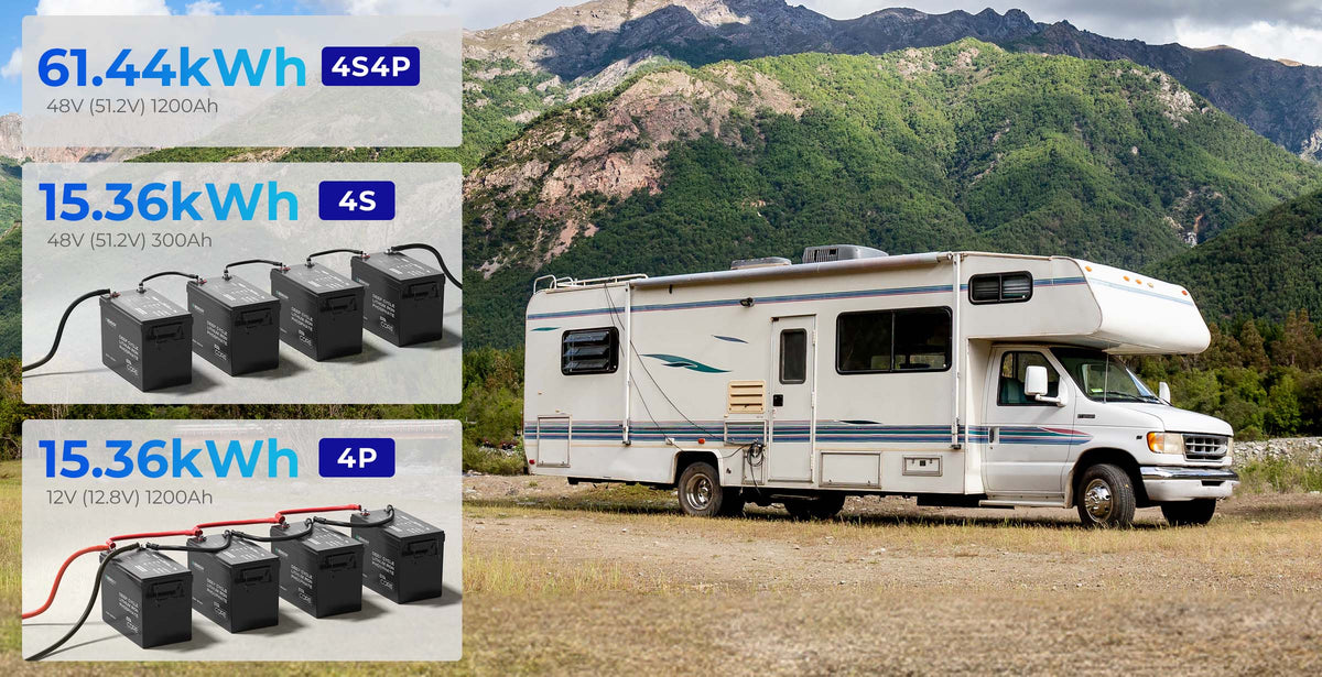 Personalizza il tuo sistema di alimentazione in base alle tue esigenze. Puoi collegare fino a 4 batterie in serie, 4 in parallelo, oppure combinare entrambe le configurazioni per creare una soluzione di backup su misura, pronta per qualsiasi avventura.