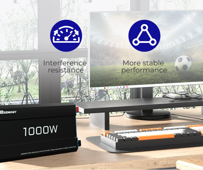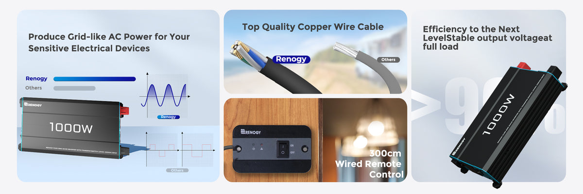 - 【Alimentazione di Alta Qualità】 L’inverter Renogy 1000W 12V a onda sinusoidale pura utilizza una tecnologia avanzata, fornendo energia pulita e stabile. Ideale per dispositivi elettronici sensibili, prolunga la vita dei tuoi apparecchi e previene interferenze.