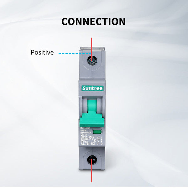The Suntree DC Miniature Circuit Breaker is designed to protect DC electrical installations against overloads and short circuits, with both the thermal and magnetic tripping mechanism equipped. Once a fault is detected, the circuit breaker automatically switches off the electrical circuit to prevent damage to wires and avoid the risk of fire. The circuit breaker can also be manually opened under the full rated load without any damage when electrical maintenance needs to be performed. Engineered for reversible connection, the circuit breaker is allowed to be wired in either direction and functions under bidirectional current. The built-in indicator window helps identify the contact position of the circuit breaker at a glance. The buckle design enables easy installation on the standard DIN rail.