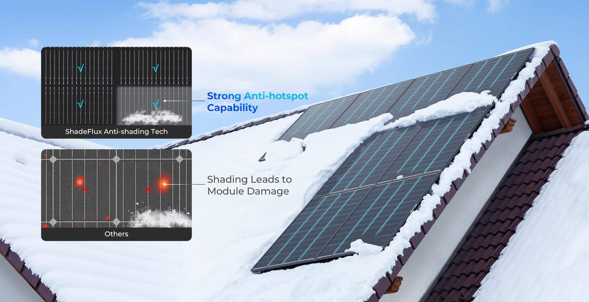 Dalle ombre irregolari ai giorni di neve, la tecnologia ShadowFlux garantisce la massima produzione di energia, eliminando preoccupazioni legate a ombreggiature o detriti.