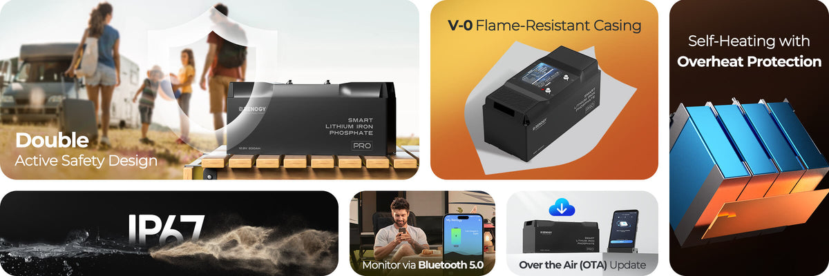 - Batteria 2-in-1 12V 200Ah LiFePO4 con Auto-riscaldamento e Bluetooth