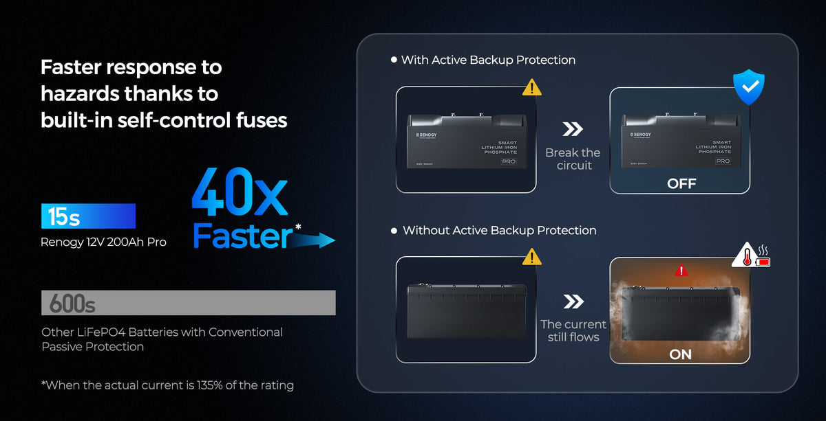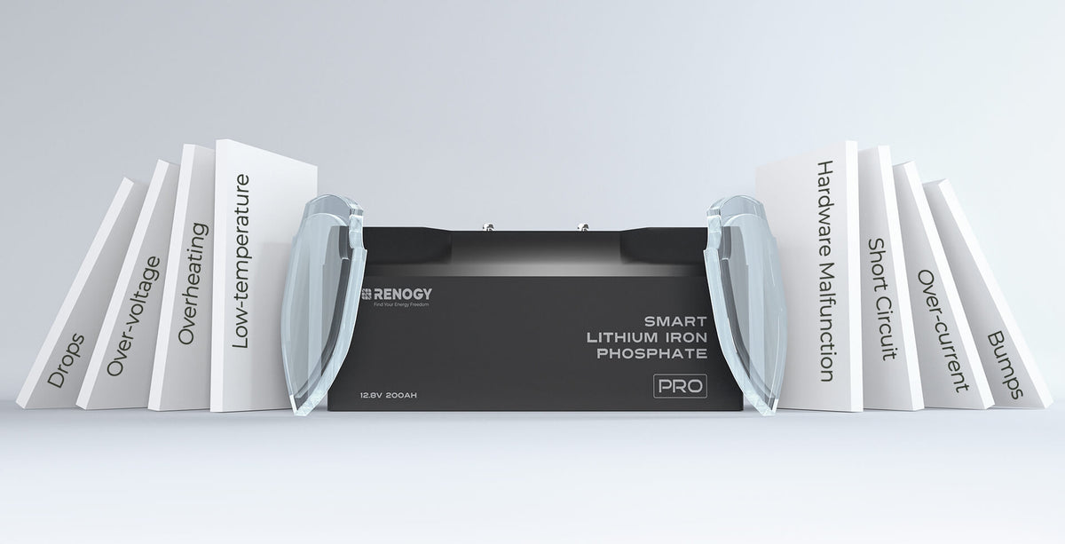 La batteria LiFePO4 12V 200Ah più sicura di Renogy, progettata per prestazioni affidabili in tutte le condizioni atmosferiche.
