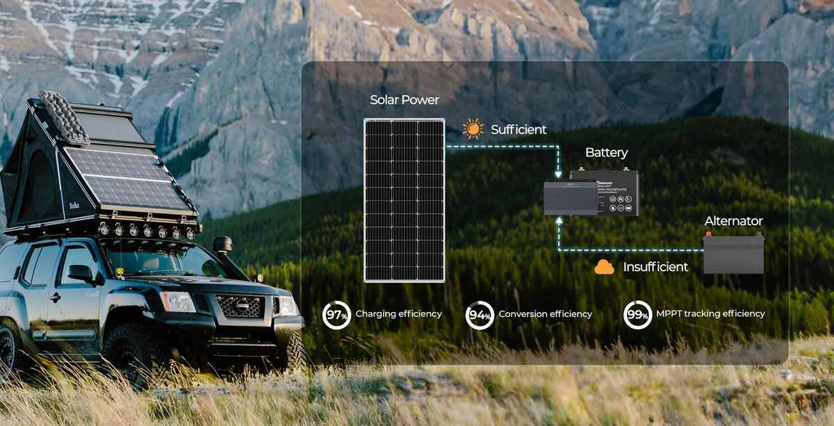 Intelligently combining vehicle and solar power, this charger automatically adjusts modes based on sunlight intensity, ensuring optimal energy use at all times.