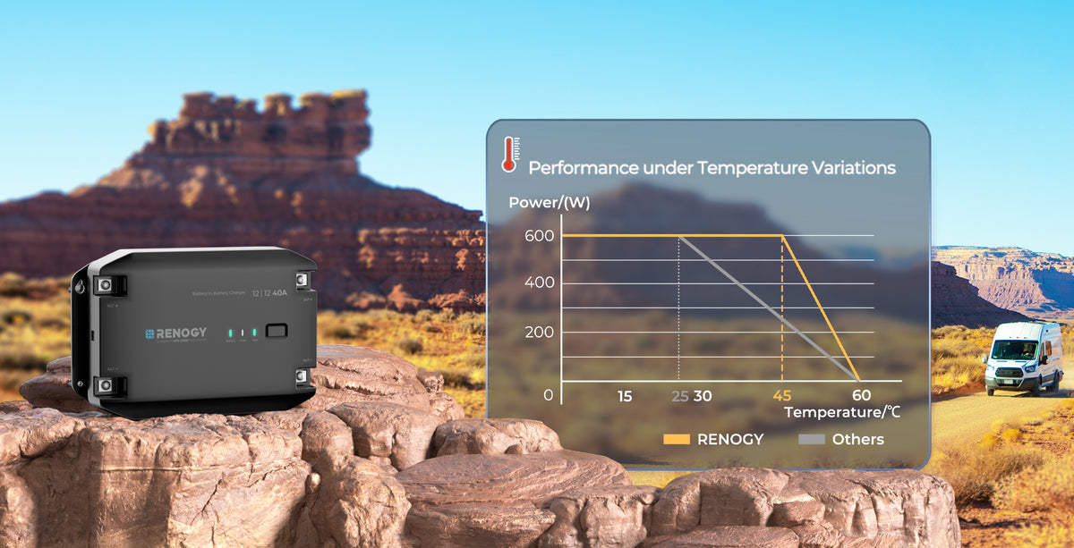 Il caricabatterie DCC di seconda generazione riduce in modo intelligente la potenza di uscita in ambienti ad alta temperatura, garantendo una ricarica sicura ed efficiente senza compromettere le prestazioni del sistema.