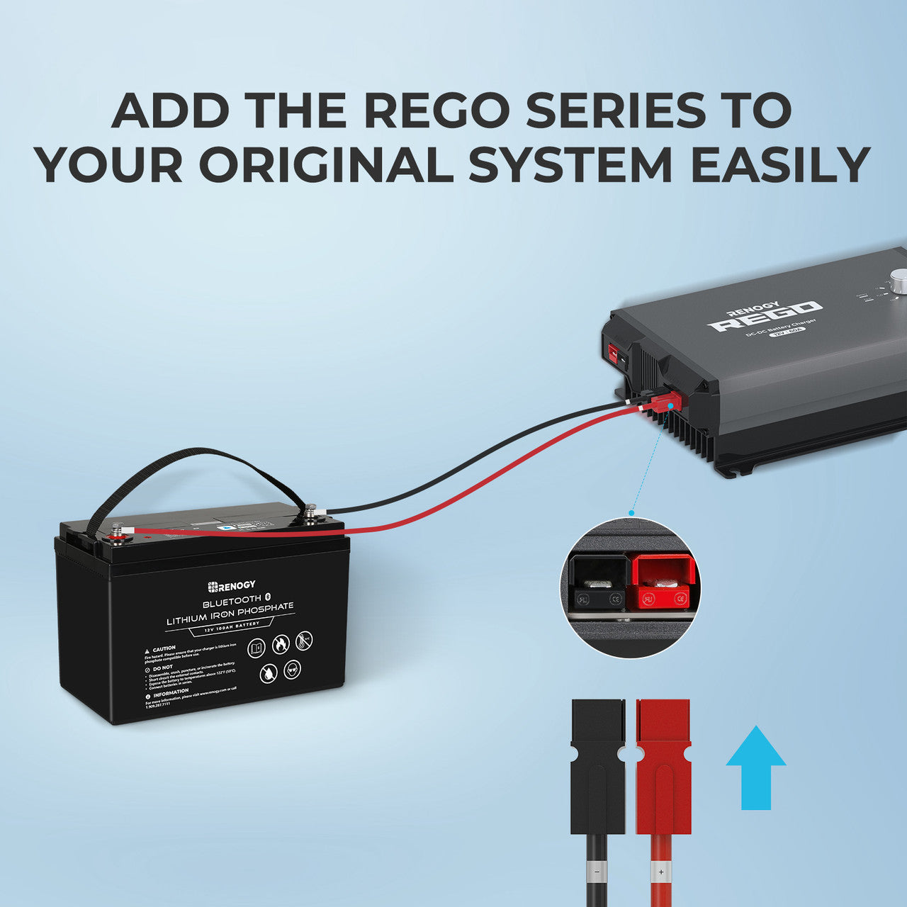 - 【Plug&Play Operation】The Anderson connectors offer a simple and efficient way to connect the REGO battery charger to your batteries, reducing installation time by 60%. Positive and negative labels on both ends of the cables simplify system installation.